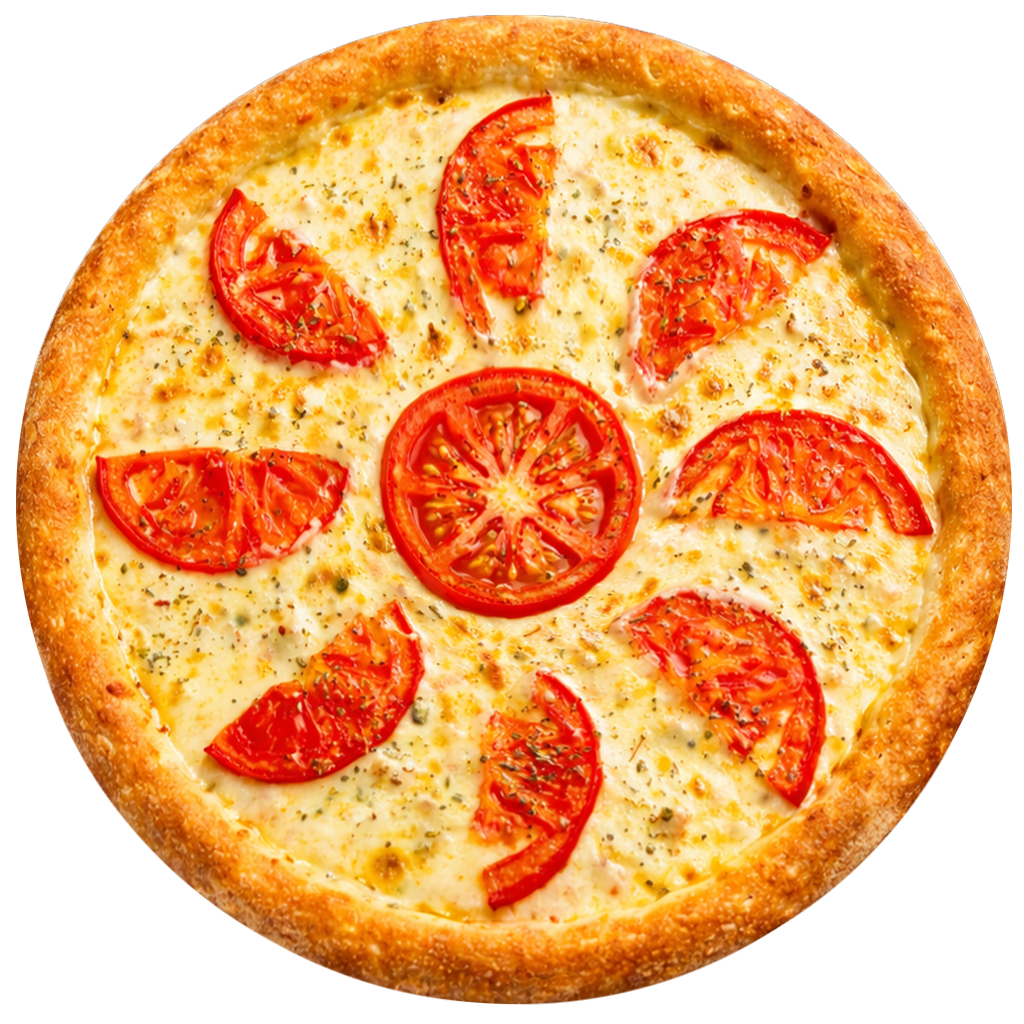 Состав: тесто, пицца соус, сыр моцарелла, помидоры